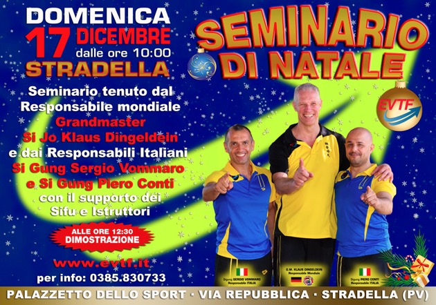COME NOI NESSUNO La frase pronunciata da Sigung Piero domenica a pranzo a seminario concluso racchiude in poche parole l'essenza di questo evento. È così, nessuno oggi può vantare una scuola di arti marziali come la nostra. In una sola giornata abbiamo assistito ad un vero spettacolo, senza considerare il bellissimo allenamento con il Sijo Klaus Dingeldein di sabato! È come se un filo rosso unisse più generazioni di appassionati di VingTsun e oltre 200 persone fossero avvolte da tale filo! Si parte con più di 100 bambini che hanno dato vita ad un emozionante allenamento coordinato dagli istruttori e che li ha visti protagonisti entusiasti ed entusiasmanti. Si prosegue con ragazzi che dedicano buona parte o tutta la loro vita al VingTsun da un bel pò di anni e che sono di esempio e di stimolo per chiunque si voglia avvicinare a questa disciplina. Parlo di Master Lele Ciccarelli che, come ormai da anni ci ha abituato, ha lasciato tutti senza parole per l'ennesima dimostrazione carica di Pathos e di emozioni che hanno contagiato tutti i presenti, usufruendo dei suoi istruttori Andrea, Matteo ed Elia e dei suoi studenti che hanno svolto egregiamente il loro ruolo. Parlo di Sifu Lele Mastropietro che con grande e pieno merito ha conseguito il titolo di Master, completando e padroneggiando il sistema del VingTsun e coronando una splendida carriera. Di Sifu Juan che ci ha regalato ancora una volta la sua presenza dando a tutti, tra cui me in primis, la possibilità ed il piacere di allenarsi con una persona che, grazie alla sua passione ed alla sua determinazione, in pochi anni ha costruito 5 scuole di VingTsun in Spagna, dando vita ad un gruppo enorme di ragazzi motivati ed in crescita continua. Sto parlando anche dell'istruttore Matteo Mazzocchi, un ragazzo speciale che ho avuto il privilegio di conoscere 10 anni fa quando ha iniziato a ridare vita alla scuola di Parma, insieme a Sigung Sergio e Sifu Fabio, allenando e formando con grande entusiasmo e preparazione i ragazzi che arrivavano, tra i quali posso dire con orgoglio di esserci stato anch'io! Per cui vederlo conseguire il 4° grado tecnico è stato per me una grande emozione ed una soddisfazione nel guardare quanto in alto sia arrivato! Passando all'ultima parte delle generazioni del VingTsun, arriviamo ad un personaggio veramente particolare, il nostro per gli amici "Maestro Miyagi", o Emanuele, che alla "verdissima" età di 70 anni ha raggiunto il traguardo del 4° grado tecnico, risultato ottenuto grazie alla sua grandissima costanza e perseveranza nel viaggiare tutte le settimane da Milano a Stradella per allenarsi con il neo Master Lele Mastropietro. Anche “Miyagi” è un esempio, uno straordinario esempio, di ciò che nella vita si può fare se si crede e ci si sacrifica per un obiettivo. Complimenti quindi a tutte queste persone ed a tutti coloro che hanno dato vita a questo grande show in cui non è mancato nemmeno Babbo Natale Roby che ha dispensato dolcetti a tutti! E come sempre per finire, anche se in realtà è l'origine di tutto, grazie al nostro Sijo per la carica e l'esempio che porta a tutti, ai nostri Sigung Sergio e Piero che con Master Stefano rendono possibile questa straordinaria realtà, ed a tutti i Sifu e gli istruttori che danno una mano alla Federazione! Un abbraccio a tutti! Sergio Cudazzo